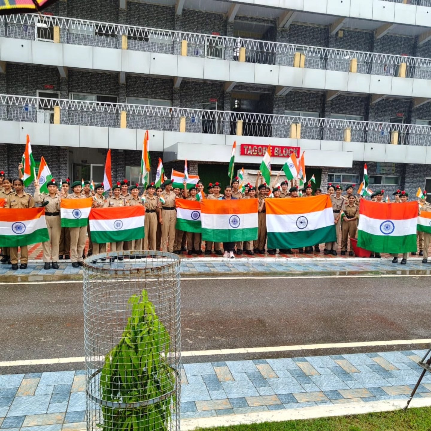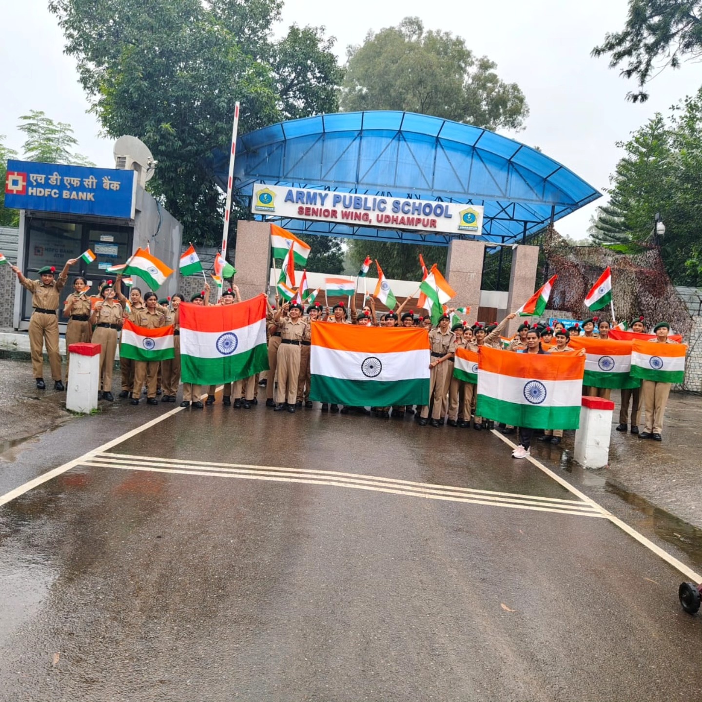 NCC Cadets of Army Public School, Udhampur, organised a spirited Tiranga Rally under the mentorship of NCC Second Officer (ANO) Meenakshi and third officer Rajan Prashar, 6Jk battalion. The event was flagged off by Mrs. Reena Sharma, Vice Principal APS Udhampur who praised the cadets for their enthusiasm and highlighted the importance of such awareness drives in shaping responsible and disciplined citizens. Marching in perfect synchronisation and dressed smartly in their NCC uniforms, the cadets carried banners and placards displaying messages of discipline, unity, and patriotism. Their confident slogans and determined steps drew the attention of both students and residents in the surrounding areas, effectively conveying the rally’s message. The rally not only strengthened the values of teamwork and dedication among cadets but also inspired spectators to embrace the ideals of NCC. The program concluded with words of encouragement from ANO Meenakshi and Rajan urging cadets to continue contributing actively towards community service and national pride.